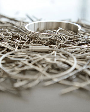 The Ruban collection was born with Le Gramme in 2013 and draws its inspiration from elemental shapes present in the collective unconscious. An iconic shape, clasp-less, pure and perfectly simple, giving the impression of a creation sliced from the material, almost left in its raw state. Le Gramme's Ruban bracelets are crafted in France from recycled precious metals.